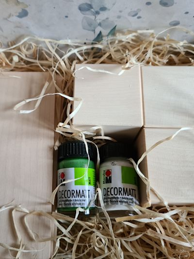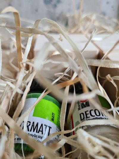 Zum Veredeln der Rohlinge haben wir uns für Marabu entschieden. Eine Marke, die wir noch aus Kindertagen kennen und die sich aktiv für den Schutz unserer Umwelt einsetzt. Auch sie produzieren in Deutschland und liefern in kleinen Glasbehältern anstelle von Plastik.